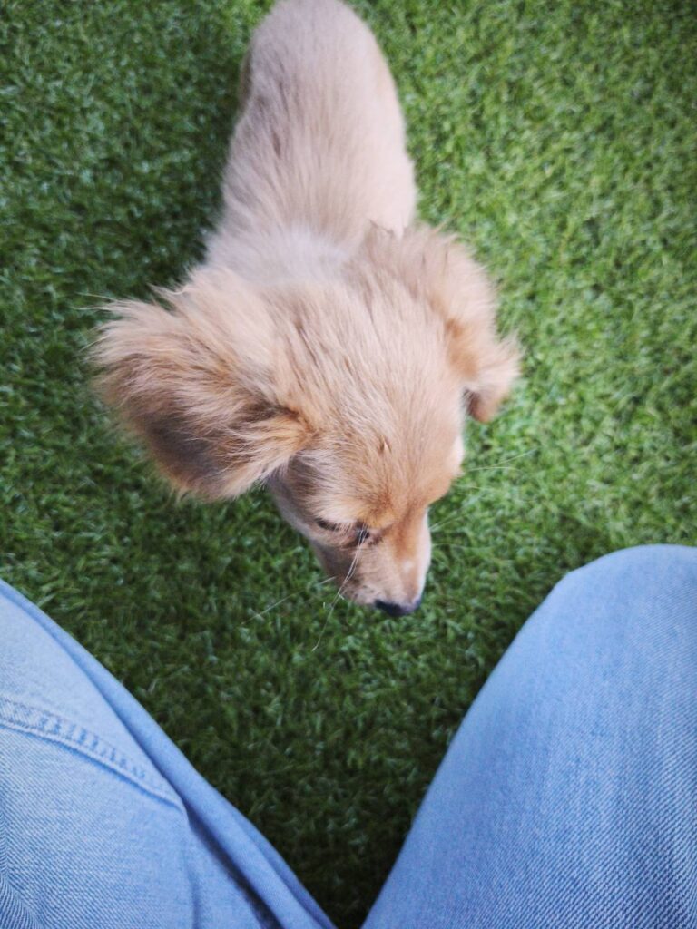 膝の間にちょこんと座るいなり、まだまだ甘えん坊で、すぐに近くにきてくれるのが可愛いところです。こういう距離感、今だけなんだろうなぁと思うとつい眺めてしまいます。