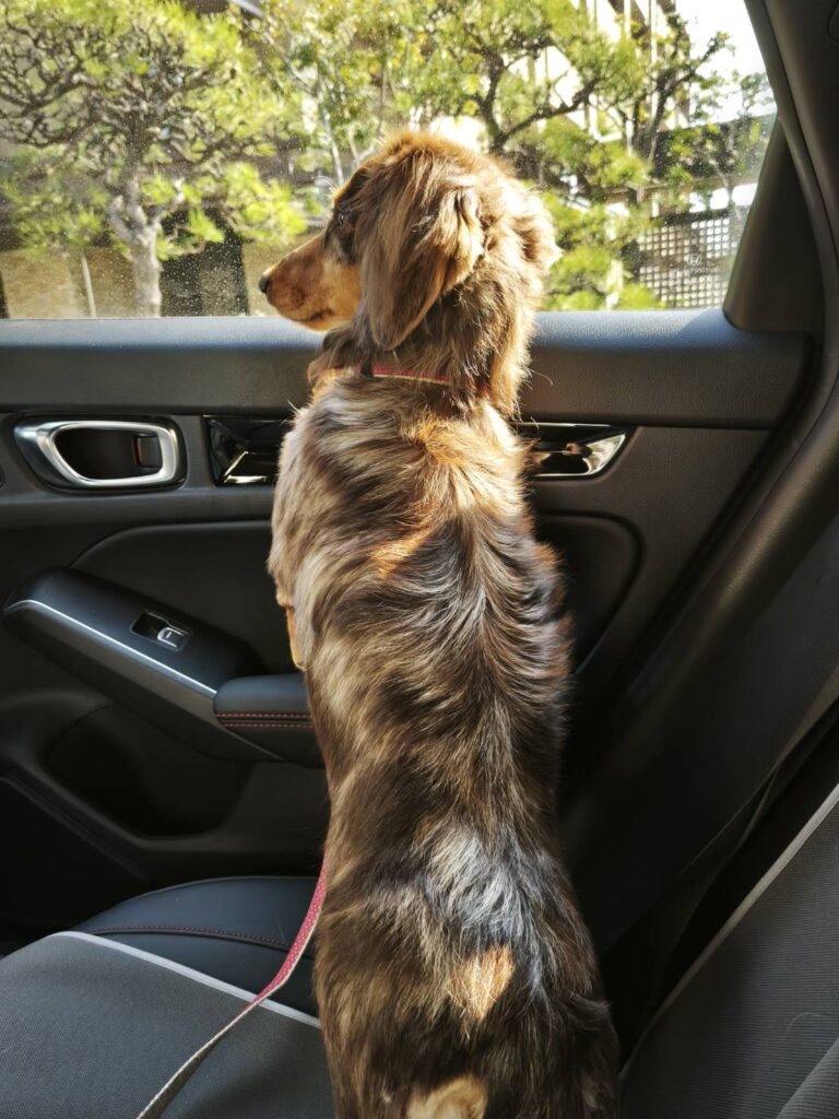 ドライブが好きなそば、どこに行くの?と身を乗り出して外を観察。