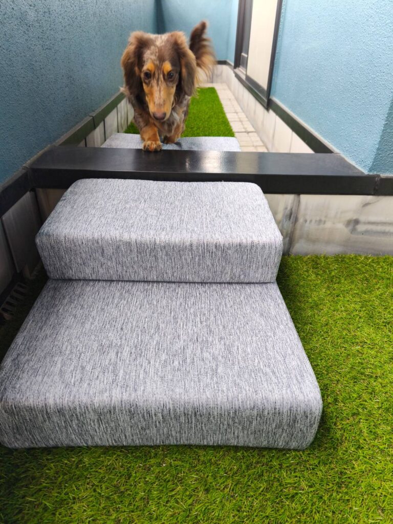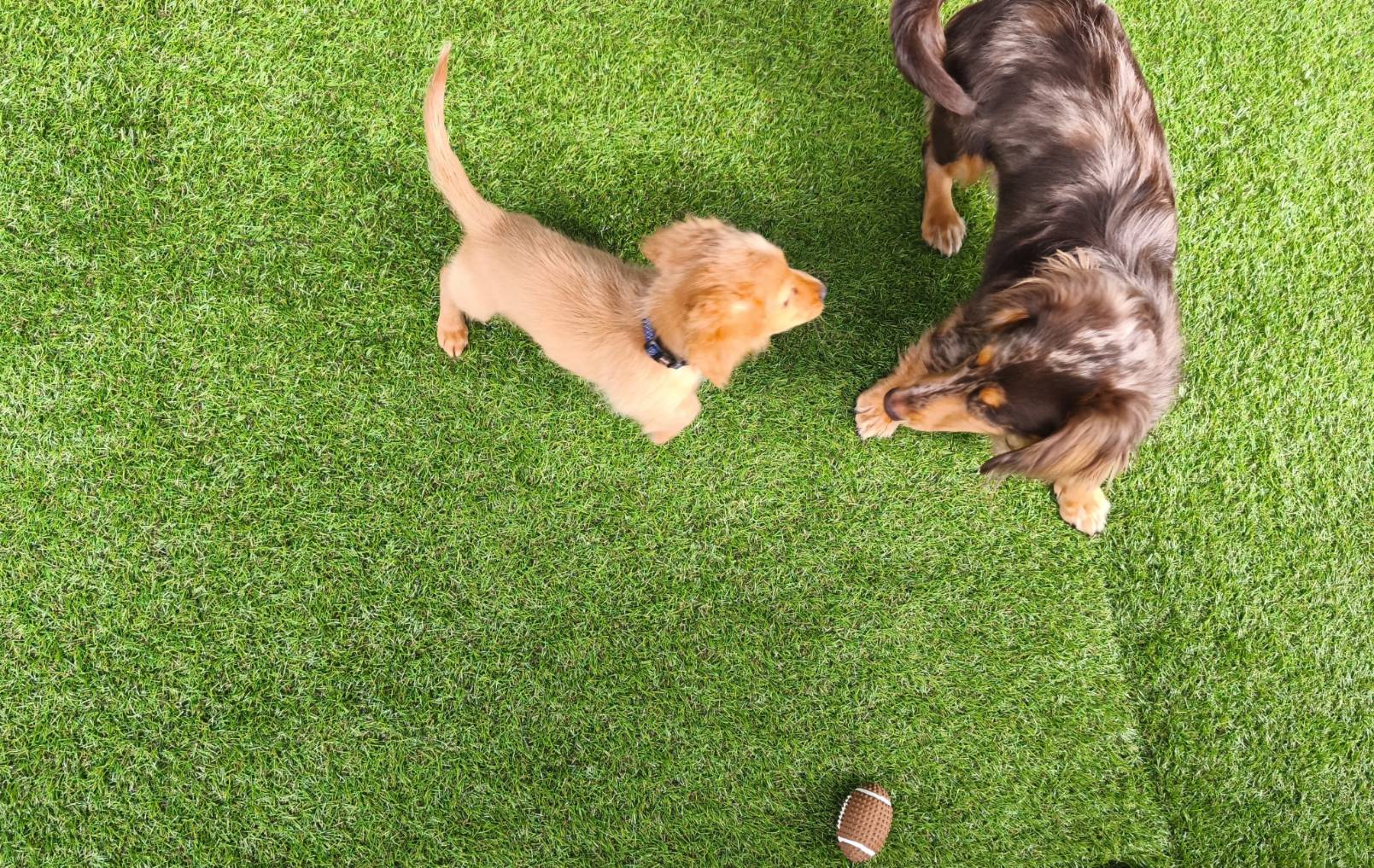 人工芝を敷いているので、ミニチュアダックスフンドで、安心して走れます。